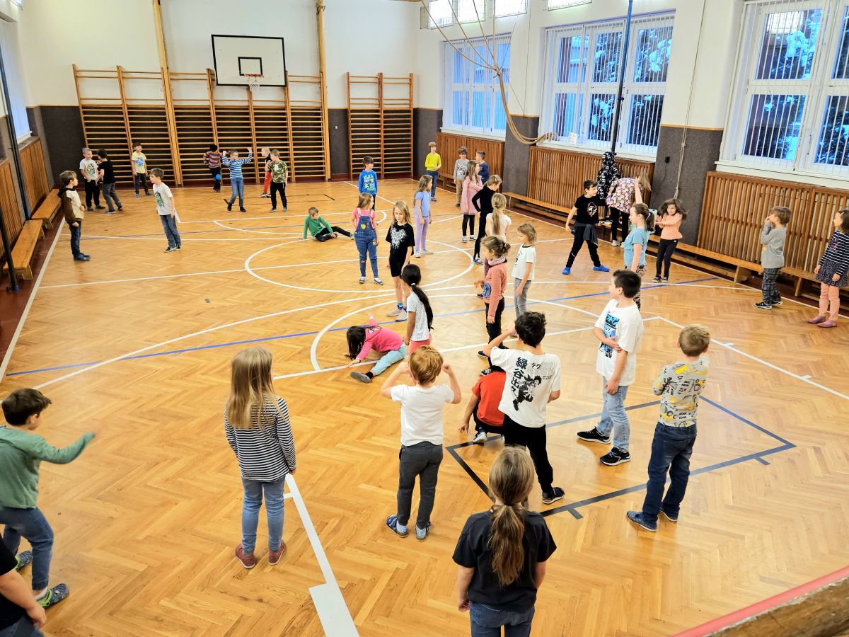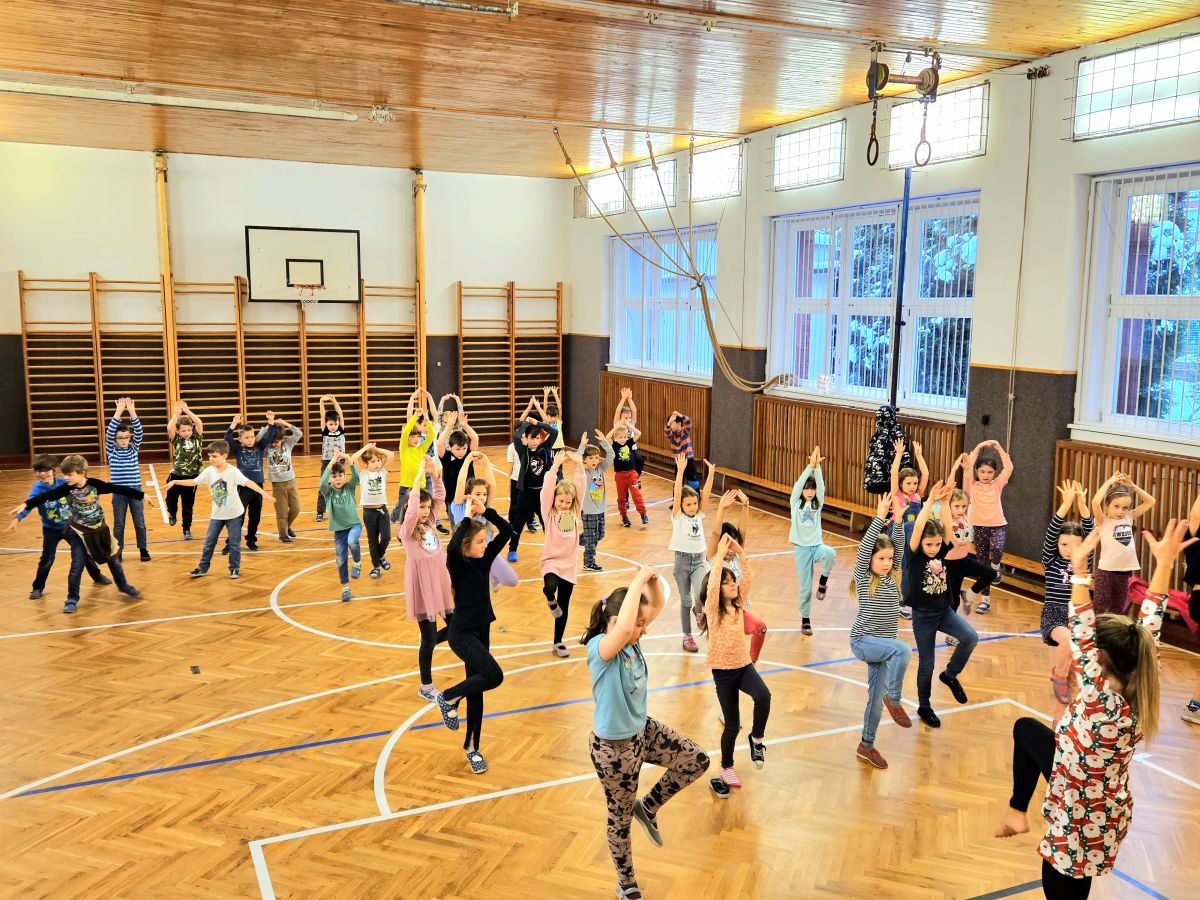Zkušená lektorka děti seznámila s programem a společně byla vybrána první hudební skladba. Každý druhák kromě Happy dance a Zumby si vyzkoušel Balance Workout a posilování v intervalu Tabata, proložené odpočinkovou částí a pohybovými hrami.