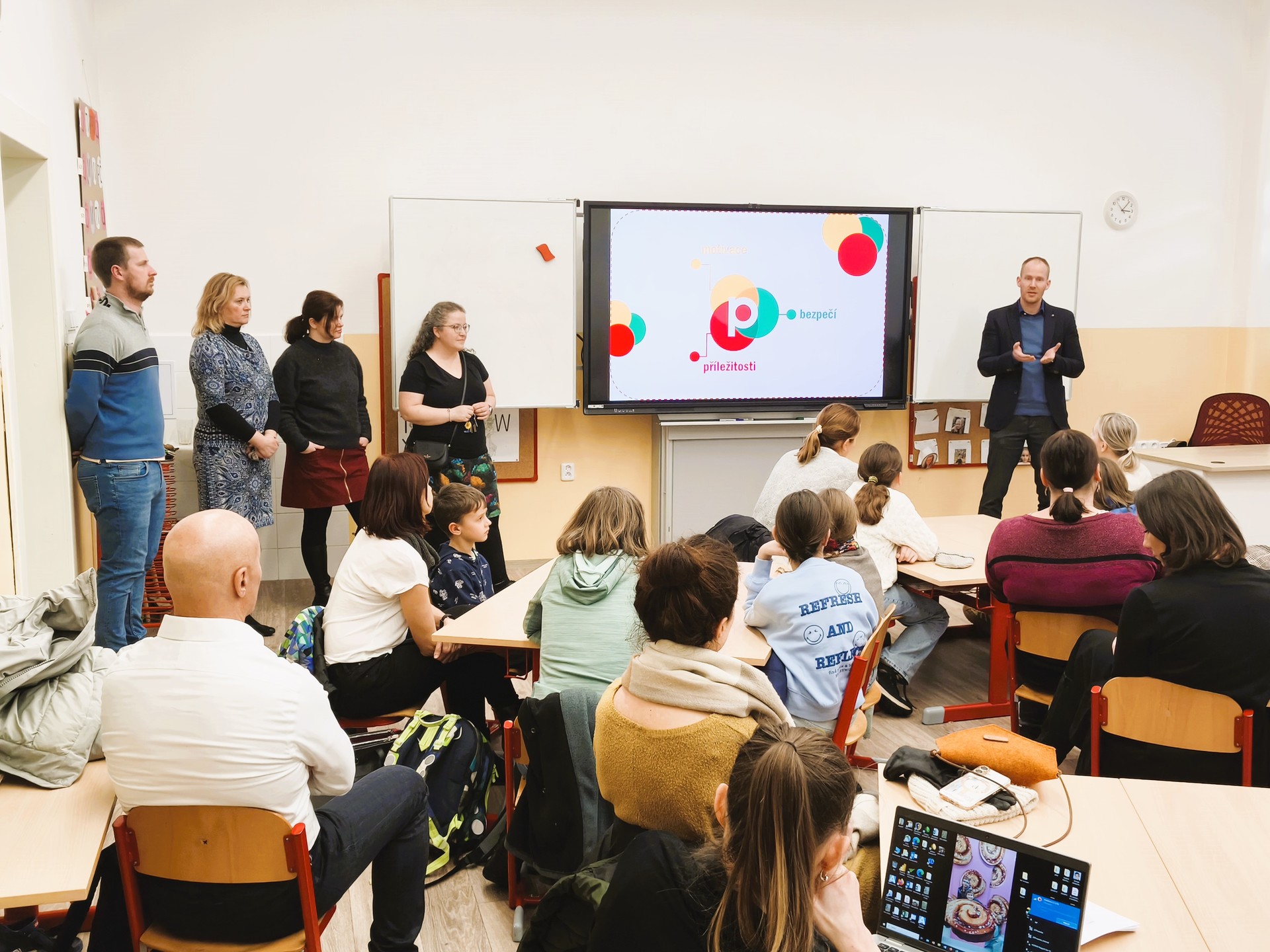 V 10:00 a v 15:00 se uskutečnilo setkání s členy vedení školy, kteří seznámili všechny přítomné s nově koncipovanou vizí školy, specifiky školního vzdělávacího programu i průběhem letošních zápisů do 1. tříd, a především dali odpovídající prostor pro případné dotazy. Školu v tento den nikdo neopouštěl s prázdnou. Rodiče plní nově získaných informací a ti nejmenší si s úsměvem na tváři odnášeli drobnou pozornost v podobě barevných balónků.