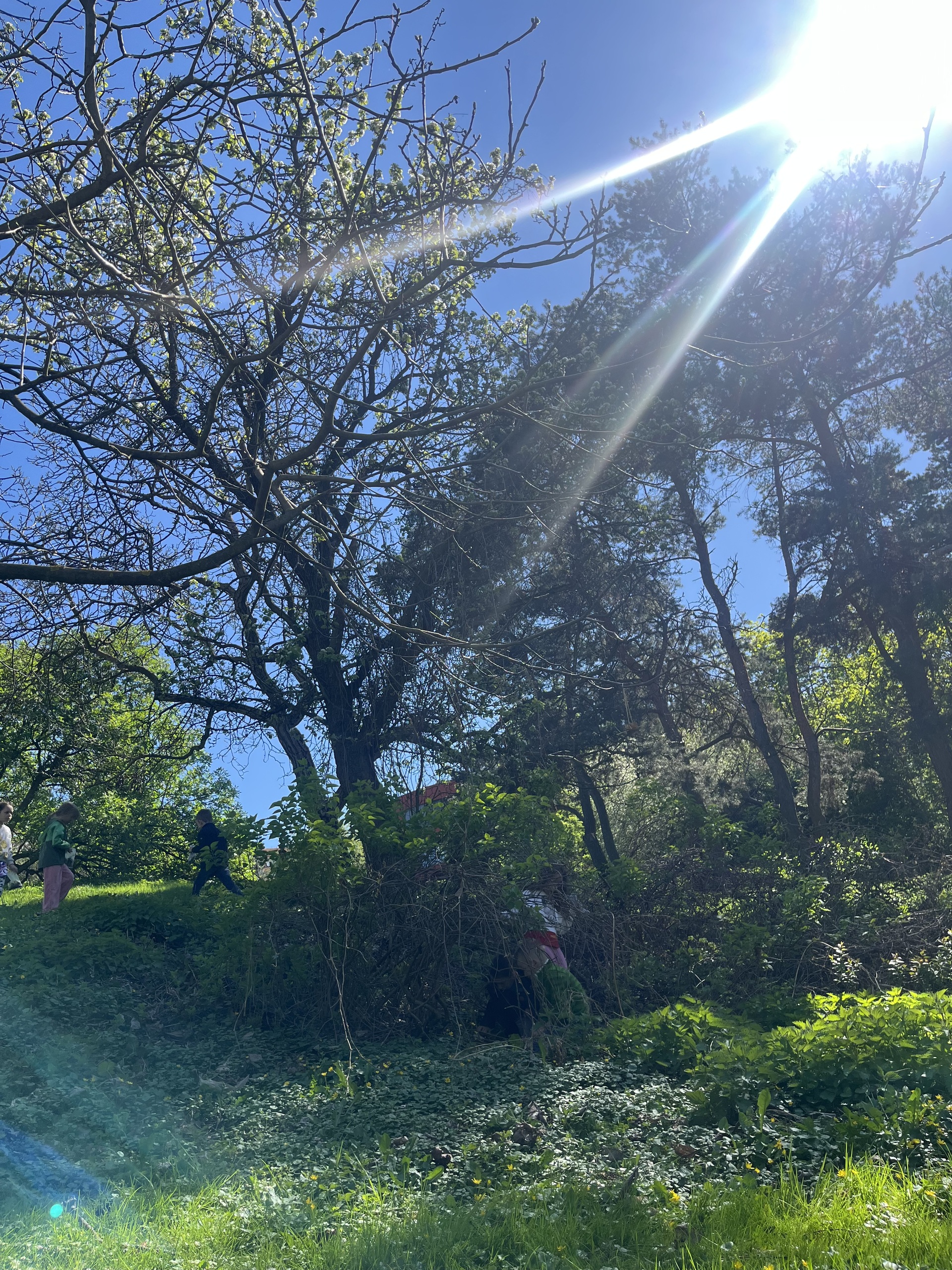 Poté jsme se vydali do okolí školy, kde děti pozorovaly a sbíraly různé přírodniny, jako jsou listy, květy, traviny či drobné větvičky. Učily se vnímat jejich rozmanitost, tvary i struktury a objevovaly krásu jarní přírody.