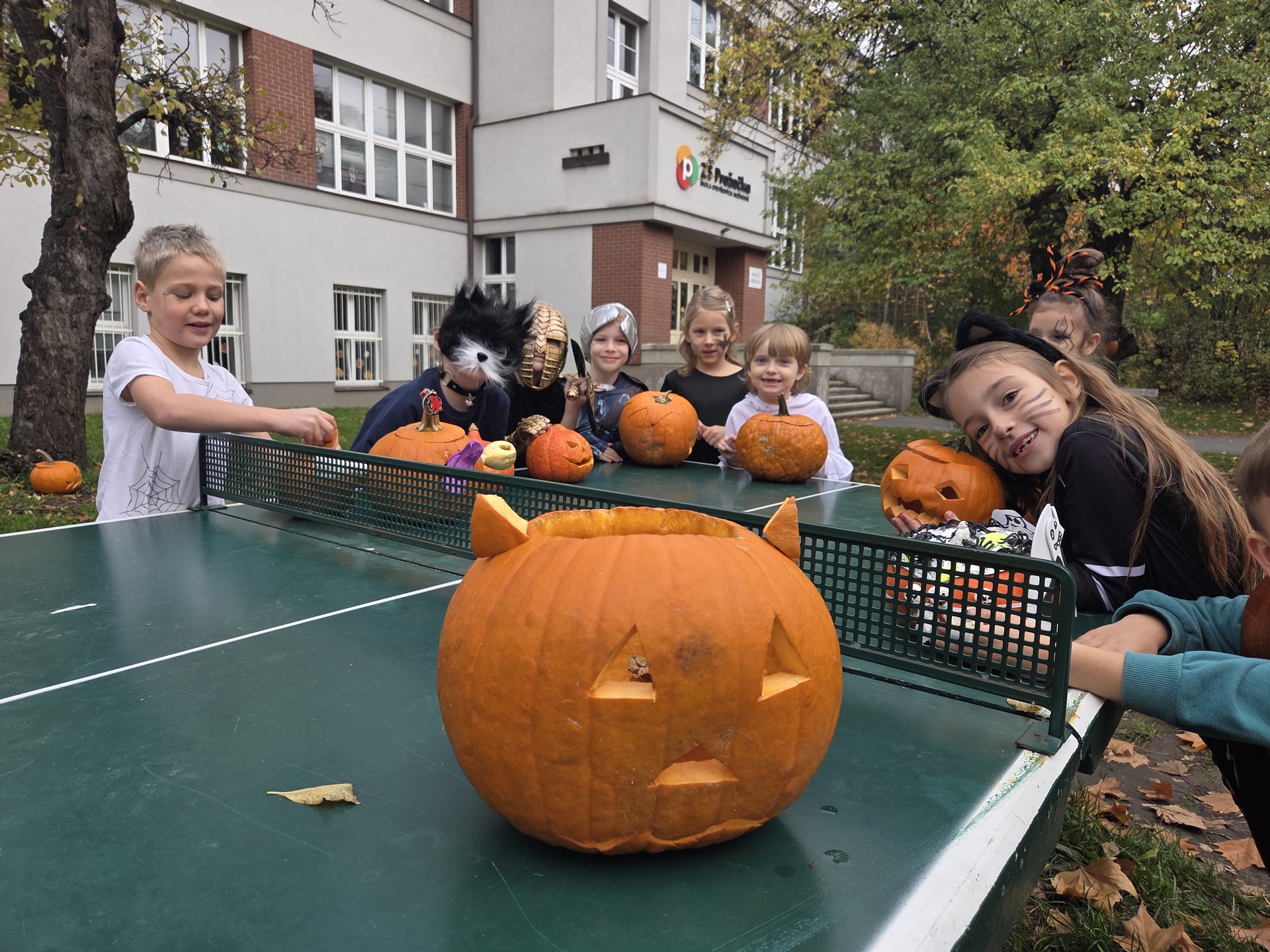 O velké přestávce se všechna „strašidla“ sešla na školním dvoře, kde se předvedli všichni žáci a i někteří učitelé ve svých kostýmech. Čekal je tam čaroděj dobroděj, pan ředitel Mgr. Michal Marád, aby všem zapojeným poděkoval a důmyslně zamaskovaným žákům předal sladkou odměnu. Viděli jsme čarodějnice, kostlivce, upíry, roztomilé dýně i velmi originální filmové postavy a v následujících dnech se pod záštitou nově vzniklého školního parlamentu uskuteční hlasování žáků o nejoriginálnější masku. Úsměvy a radost v jejich očích jsou jasným důkazem toho, že i letošní strašidelný den na Pražačce se nadmíru vydařil.