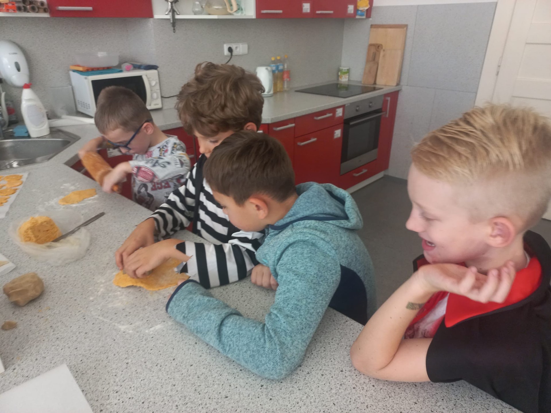 Halloweenská atmosféra však u nás nekončila jen v planetáriu. V jiný den si děti v družině také pekly vlastní halloweenské koláčky. Při přípravě těsta, zdobení i samotném pečení panovala radostná a tvořivá nálada. Děti se učily spolupracovat, pomáhaly si a zároveň si užily spoustu zábavy. Hotové koláčky nejen krásně voněly, ale také výborně chutnaly – byl to další společný zážitek, který k Halloweenu patří.