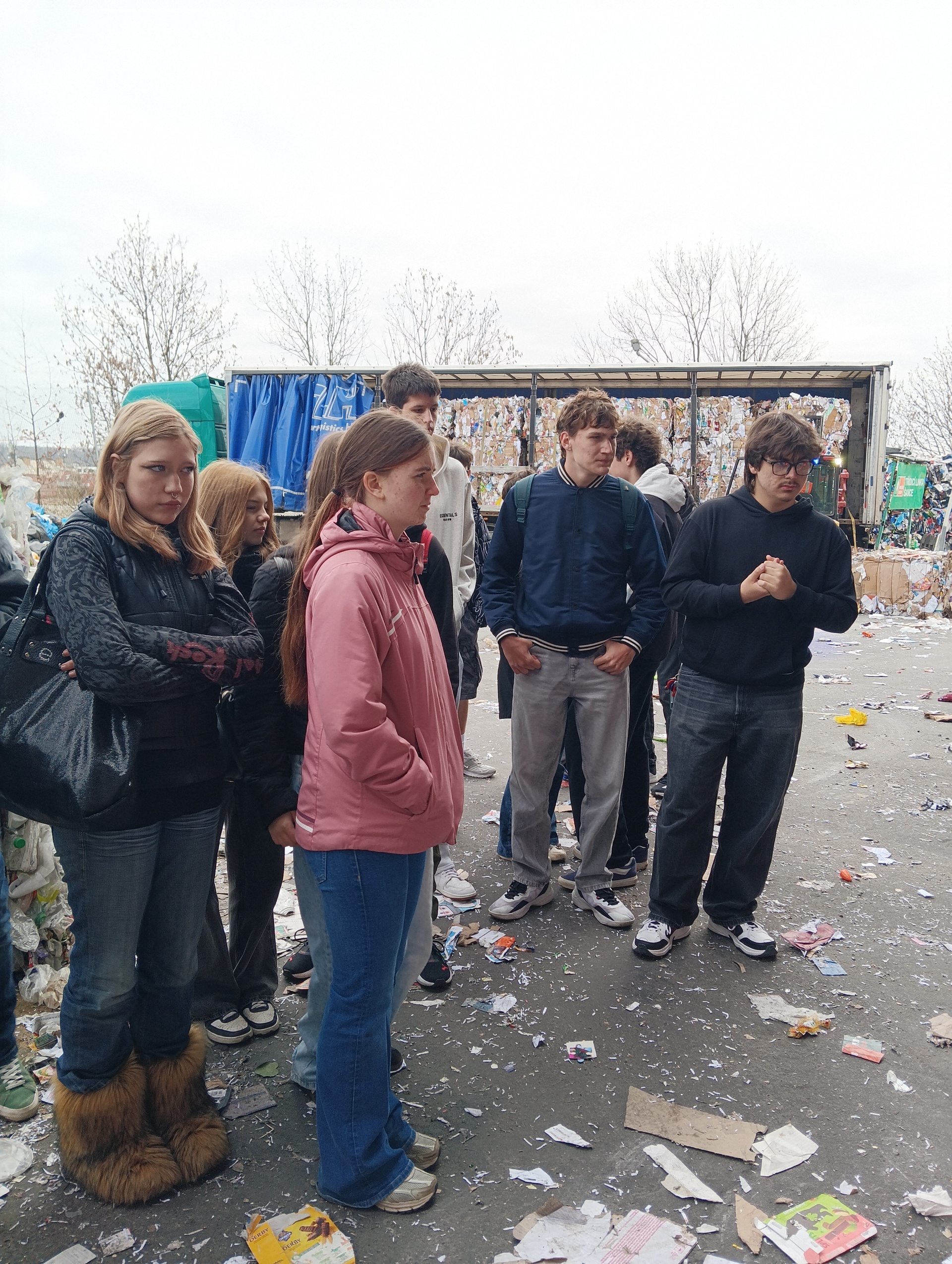 První zastávka patřila sběrnému dvoru. Žáci se dozvěděli, že sem nepatří jen běžný odpad, ale hlavně ten velkoobjemový a nebezpečný. Pan průvodce nám ukázal, jak se správně třídí elektroodpad, starý nábytek nebo stavební suť. Překvapením pro mnohé bylo, kolik věcí ze sběrného dvora může díky správné recyklaci dostat druhý život.