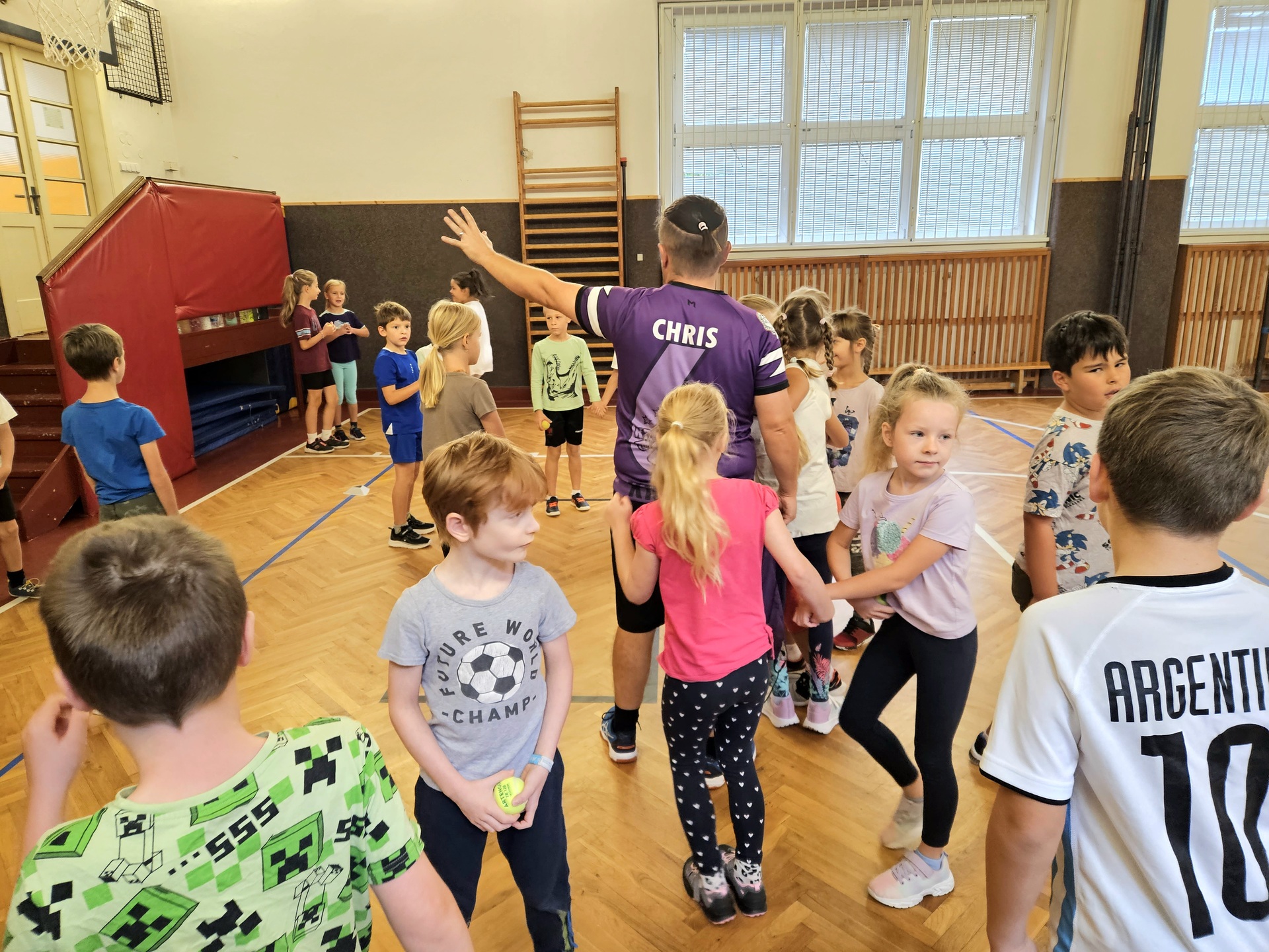 Po dobu čtyř po sobě jdoucích týdnů nás pravidelně navštěvoval napříč prvním stupněm sportovní asistent Chris, který si dal za cíl seznámit žáky i pedagogy s kriketem. Jeho mise však daleko přesahovala jen seznámení se sportem – šlo o komplexní metodickou podporu, která má trvale přivést děti k pozitivnímu vztahu k pohybovým aktivitám.
