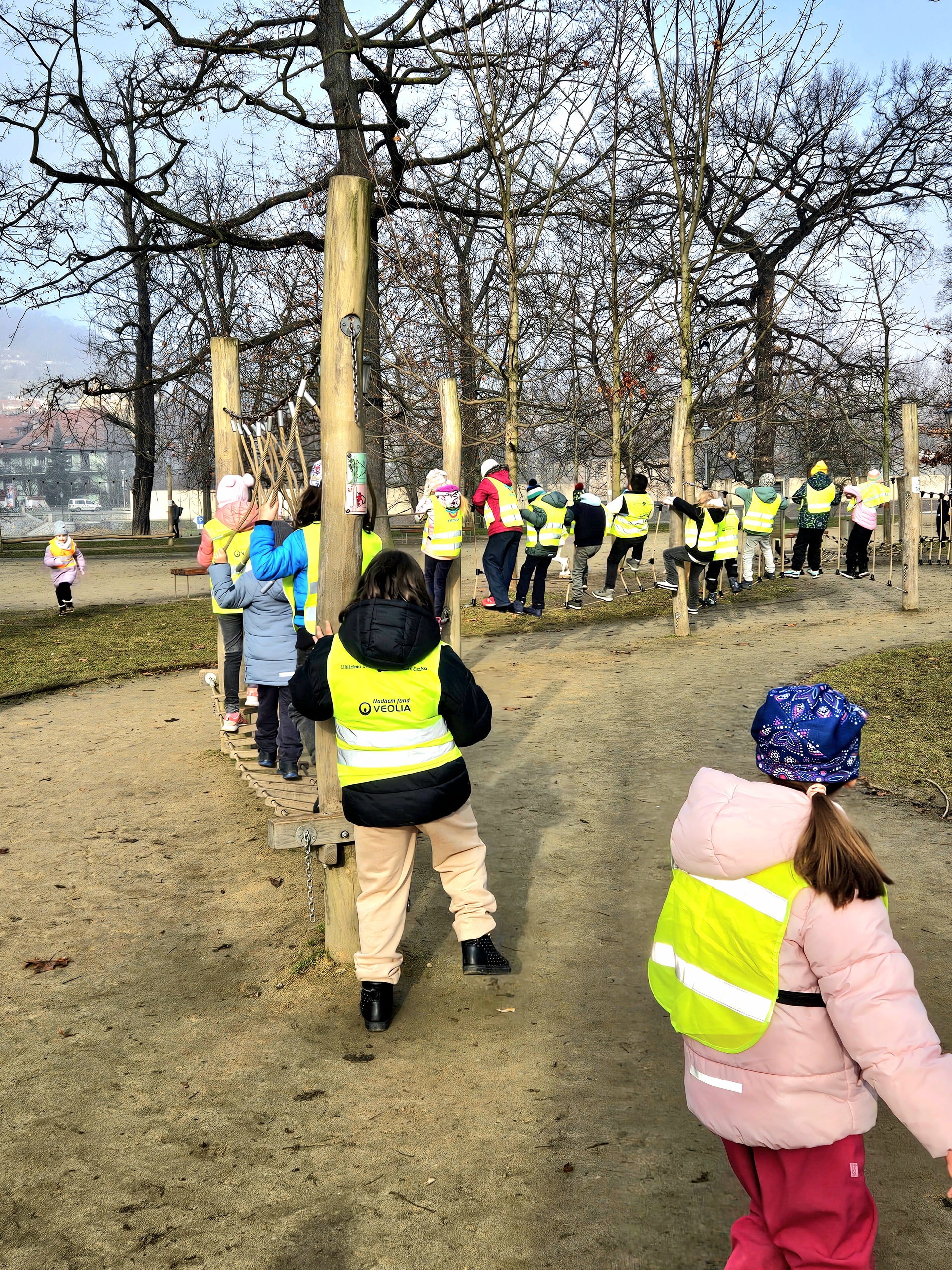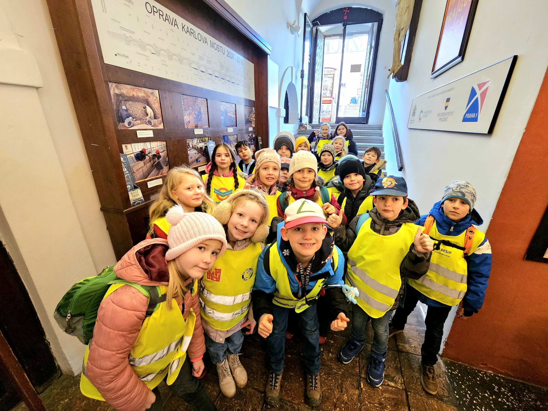 Další zastávkou bylo Muzeum Karlova mostu. A právě zde přišel jeden z nejsilnějších momentů dne. Naše děti ukázaly, že se ve škole pilně připravovaly! Svými znalostmi o stavbě mostu a historii Prahy naprosto šokovaly místní paní průvodkyni. Ta nechtěla věřit, že před ní stojí „teprve“ druháčci – jejich postřehy a vědomosti byly na tak vysoké úrovni, že si vysloužili obrovskou pochvalu.