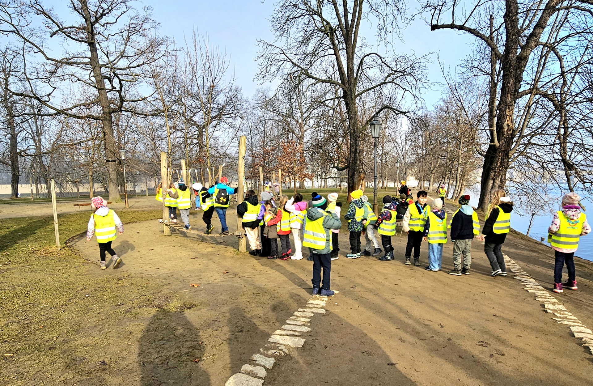 Naše putování začalo na Střeleckém ostrově. Děti se ukázaly jako vzorní ošetřovatelé – z domova si přinesly nakrájenou zeleninu pro nutrie a speciální granulky pro kachny a labutě. Sledovat zvířátka z bezprostřední blízkosti byl pro všechny velký zážitek. Než jsme vyrazili za historií, děti se ještě dosyta vyřádily na tamním přírodním hřišti.