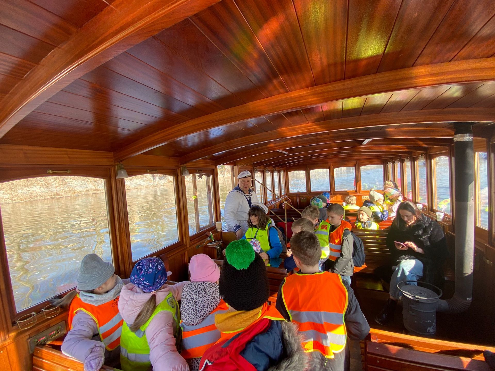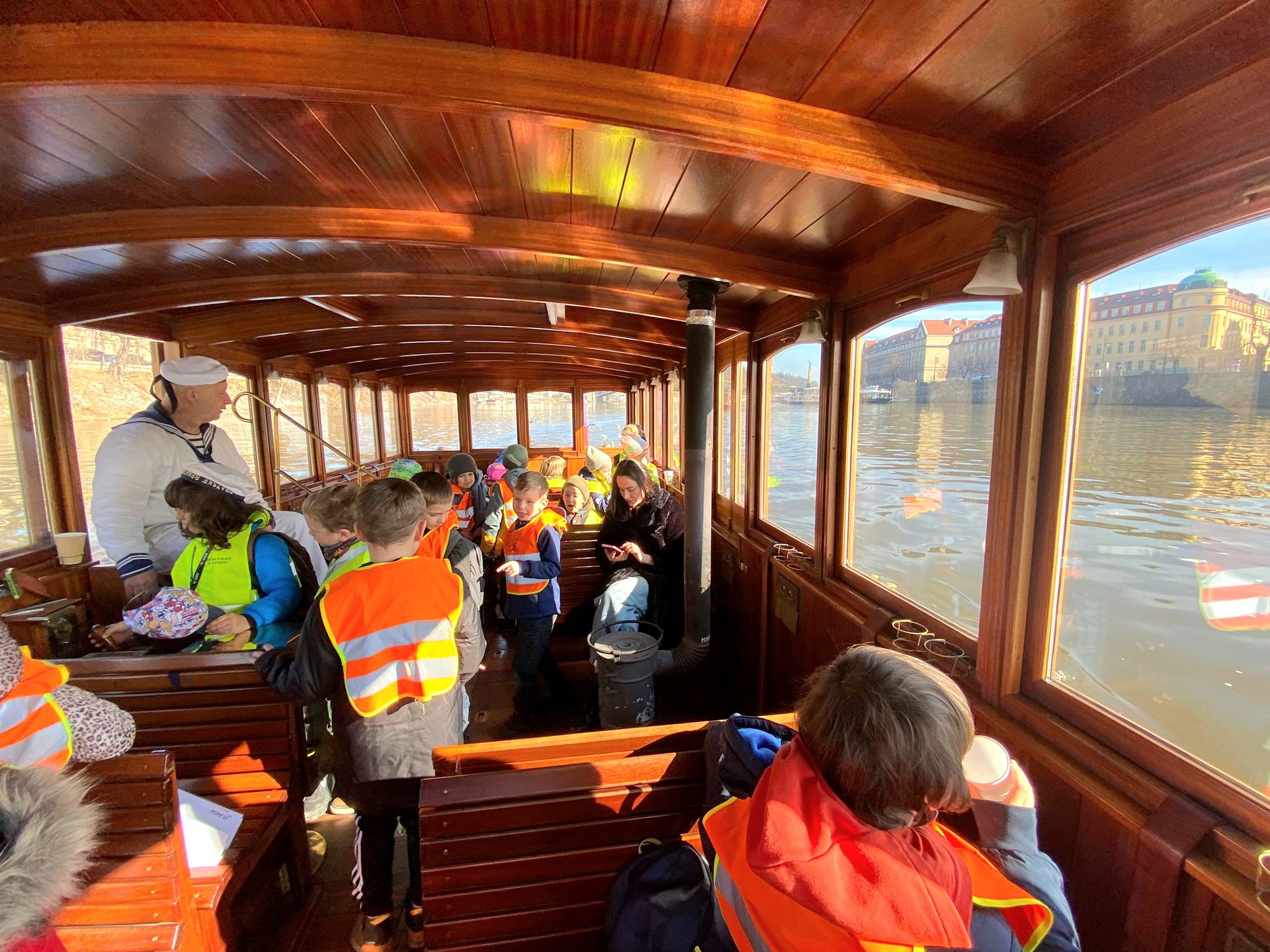 Z muzea jsme se přesunuli přímo na hladinu Vltavy. Čekala na nás plavba lodí po Čertovce a Vltavě. Pan kapitán nás provázel poutavým vyprávěním, ale nejvíce děti zaujaly dobové fotografie z dob ničivých záplav, které nám na palubě ukazoval. Bylo neuvěřitelné sledovat ten rozdíl mezi klidnou hladinou pod námi a vodním živlem na starých snímcích. Děti se se zájmem dotazovaly na vše, co souviselo s životem u řeky i s osudy starých mlýnů.