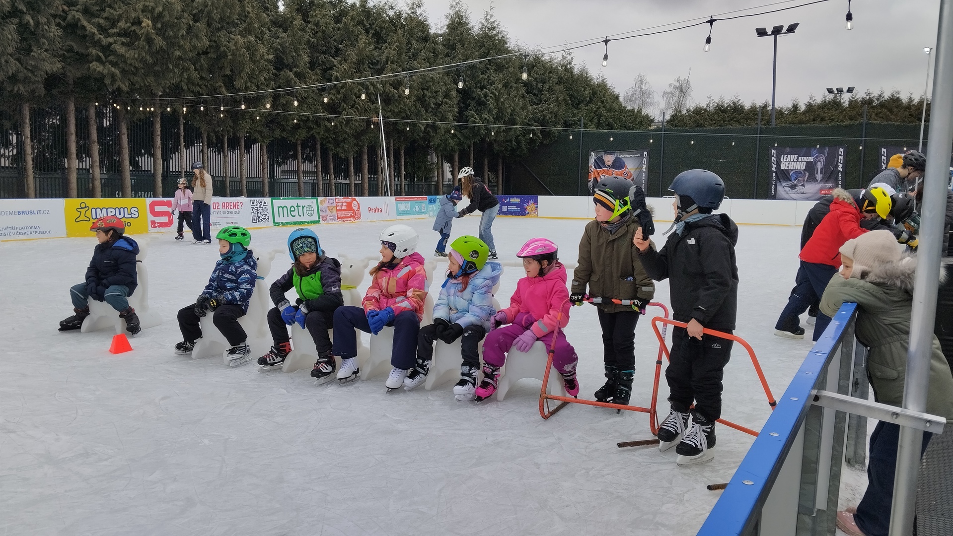 Deváťáci se role starších mentorů zhostili na jedničku. Nejdříve ochotně pomohli prvňáčkům s obouváním bruslí a následně je trpělivě doprovázeli při prvních krůčcích na ledě. Malí bruslaři si oblíbili jízdu s pomocí stabilizačních „zvířátek“, zatímco jejich starší spolužáci předváděli své bruslařské dovednosti. Bylo radost sledovat, jak velký pokrok udělali nejmladší žáci od minulé návštěvy – zdá se, že mnozí z nich během vánočních prázdnin poctivě trénovali.